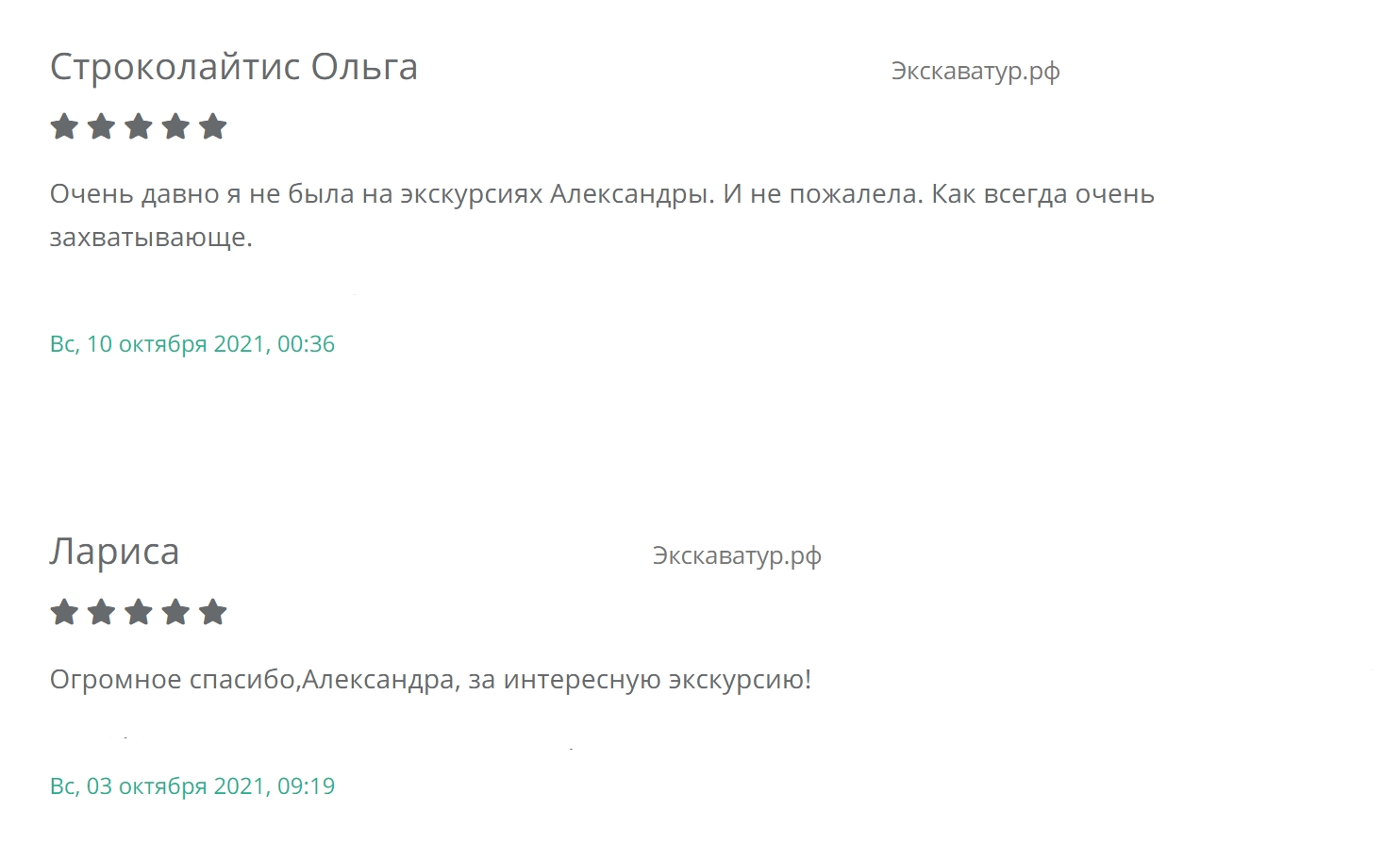 Александра - увлекательный и профессиональный экскурсовод! Очень информативные, интересные экскурсии. Посетила вторую экскурсию Александры, время пролетело незаметно и позитивно. Спасибо огромное за интересные факты о СПб и с пользой проведенное время. Планирую посетить следующие экскурсии Александры.