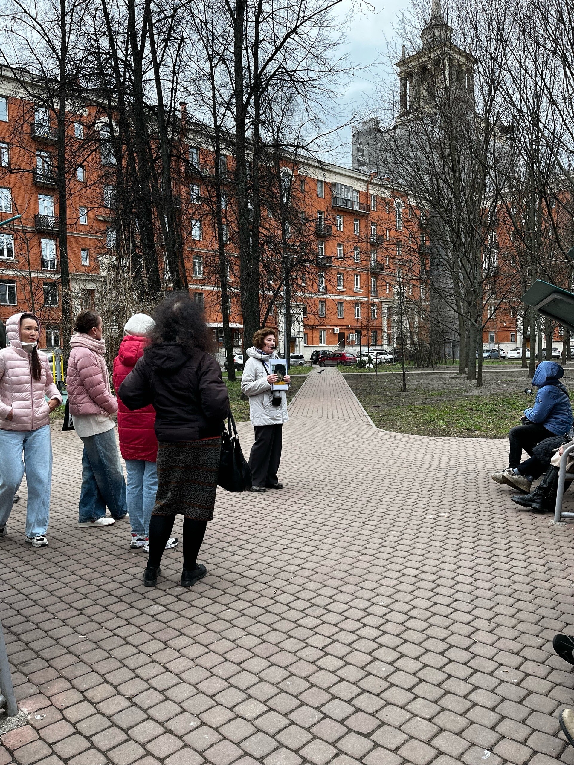 Пройдя буквально несколько метров, мы оказались в совершенно другой атмосфере. Все те же величественные дома, но нет шума, и прогулка стала обретать новые краски. Широкие улицы, вдоль которых растут деревья, фасады, поражающие своим великолепием, и, конечно же, рассказы Натальи. Именно ее подход и любовь к этому месту помогли мне с головой окунуться и прочувствовать всю полноту ее повествования.