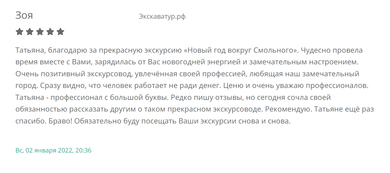 Если вы были на экскурсиях Татьяны, опишите свои ощущения в форме ниже: